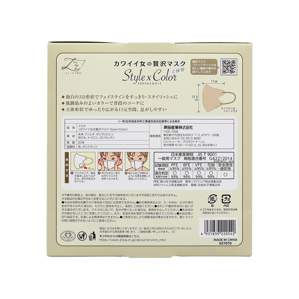 日本産業規格 JIS T 9001 一般用マスク 規格適合番号 G42212014 適合番号発行元:JHPIA |